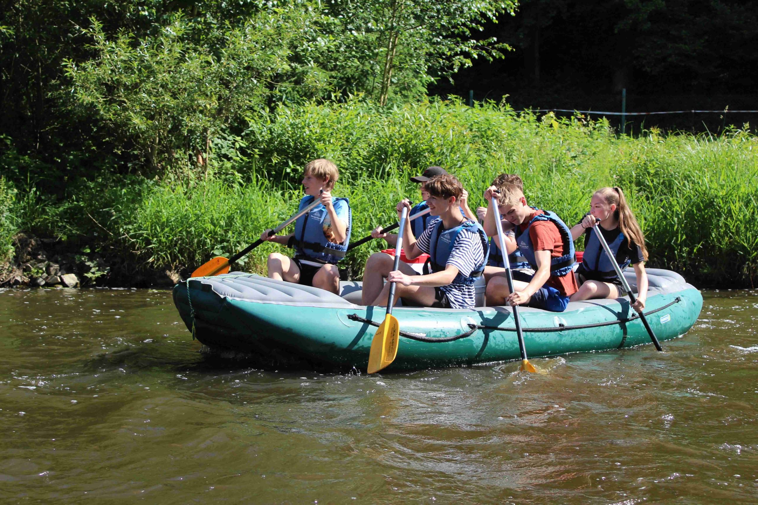 Včerejší jednodenní kurz na raftech po Vltavě se vydařil. Počasí nám přálo, což přispělo k pohodové atmosféře celého výletu. Žáci si užili nejen samotnou plavbu na raftech, ale někteří se také vykoupali v řece (s různou mírou dobrovolnosti). Tímto děkujeme paní učitelce Moravcové za její bojové nadšení a ukázku judistické techniky Ura-nage. Fotografie dokumentují průběh kurzu, zachycují žáky při plavbě i odpočinku. Všichni se zúčastnili s velkým nasazením a odnesli si z výletu mnoho zážitků. Děkujeme všem zúčastněným za skvělý den.